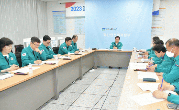 구청 9층 재난종합 상황실에서 열린 비상 소집 회의에는 안전총괄과를 비롯해 건설과, 건축과 등 재난안전 관련 13개 부서장이 참석했다.