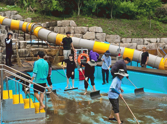 이날 진행된 대청소는 V-랜드 물놀이장 및 휴게시설 청소, 유리온실 정리와 공원 내 꽃 식재 등 강진군 산림과 전직원이 참여해, 수국길축제 준비를 위해 구슬땀을 흘렸다.