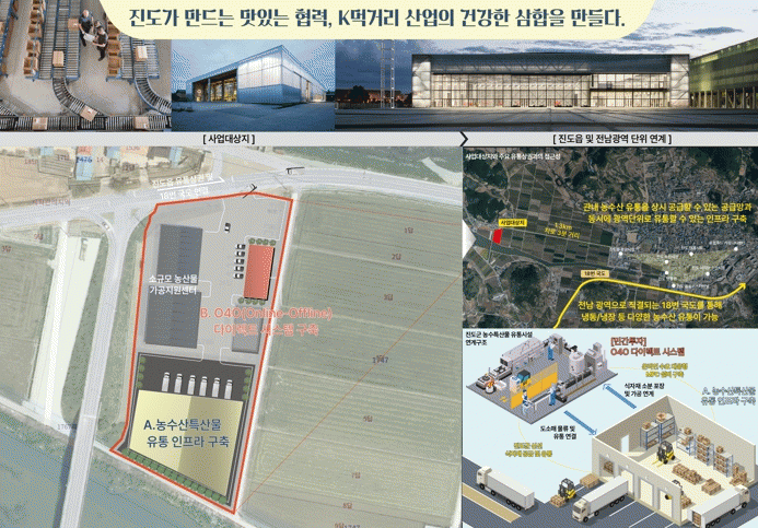 민간기업인 ‘스마트알뜰장터’와 ‘미스터아빠’가 O4O(오프라인을 위한 온라인) 체계를 구축하기 위해 소분센터와 MFC(마이크로풀필먼트시스템)를 고도화해 다양한 판매처와 소비자에게 진도먹거리가 공급‧판매되도록 협력할 계획이다.