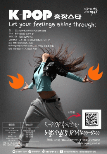 이달 29일부터 시작하는 상설 프로그램은 3가지 분야로 나눠 진행될 예정이다. 먼저, 경연 페스티벌인 ‘K-POP 충장스타’는 장르 불문 누구나 참여할 수 있다. 매달(6~10월) 예선을 거쳐 11월 최종 우승자를 선정한다. 우승자에게는 소정의 상금을 수여하고 연말 성탄절 공연을 계획 중이다.
