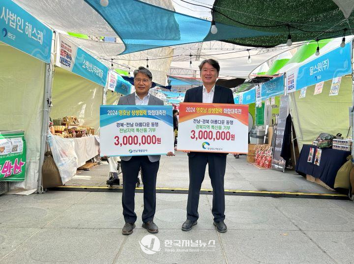 이들은 각각 300만원 어치의 특산품을 구매해 전남과 경북사회복지협의회에 기부하며 상생발전에 힘을 보탰다.