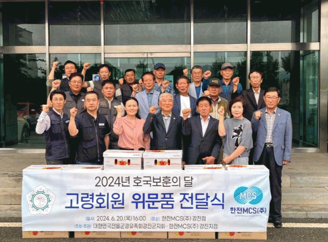 대한민국 전몰군경유족회 강진군지회와 한전MCS(주) 강진지점은 지난 해 6월 보훈 취약계층 물품 지원 및 위로등에 협력할 것을 약속하는 협약식을 갖고 위문품을 전달했으며 이번 행사를 통해 국가유공자의 예우에 더욱 앞장서겠다는 포부를 밝혔다.