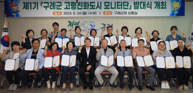 구례군은 세대별, 분야별 의견을 반영하고자 공개모집 및 읍․면 추천을 통해 고령친화도시 모니터단 20명을 위촉했다.