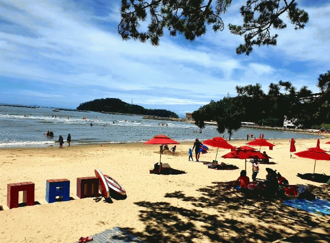 모래가 곱고 수심이 얕아 가족들이 함께하기 좋으며 해송이 제방을 따라 이어져 있어 야영을 하기에도 적합하다.