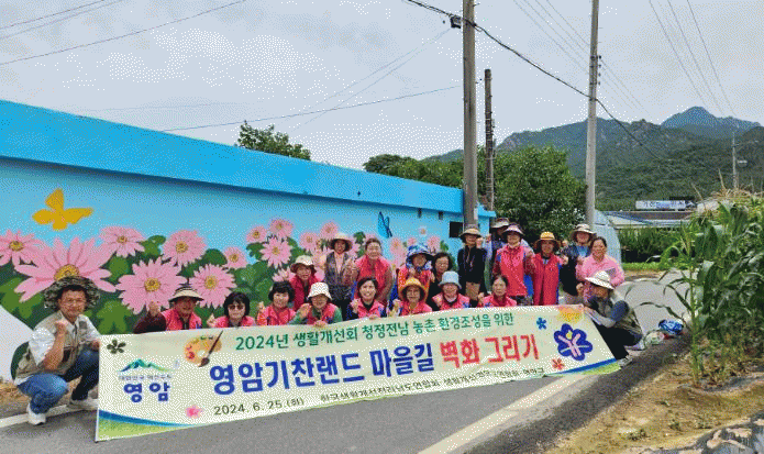 생활개선영암군연합회가 주최한 벽화 그리기 행사가, 25일 월출산기찬랜드 입구 마을길에서 성료됐다.