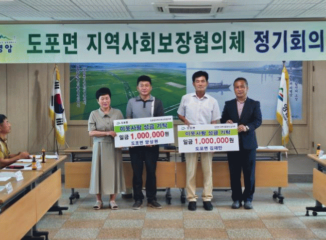 이날 정기회의를 마친 도포면지사협 위원들은 미리 준비한 배추·열무김치, 쇠고기 등 반찬 꾸러미를 홀몸 어르신과 장애인 가구 30곳에 전달하며 안부를 물었다.