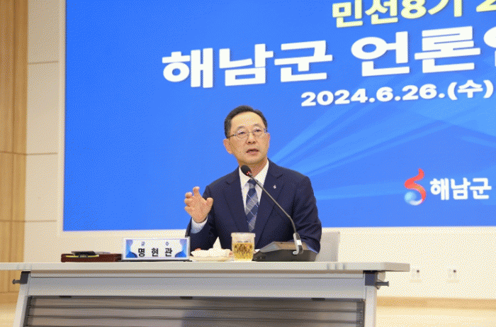 해남군은 26일 군청 대회의실에서 민선8기 2주년 언론인 간담회를 갖고, 전반기 성과를 돌아보고, 앞으로 군정발전 방향과 비전을 설명하는 대화의 시간을 가졌다.