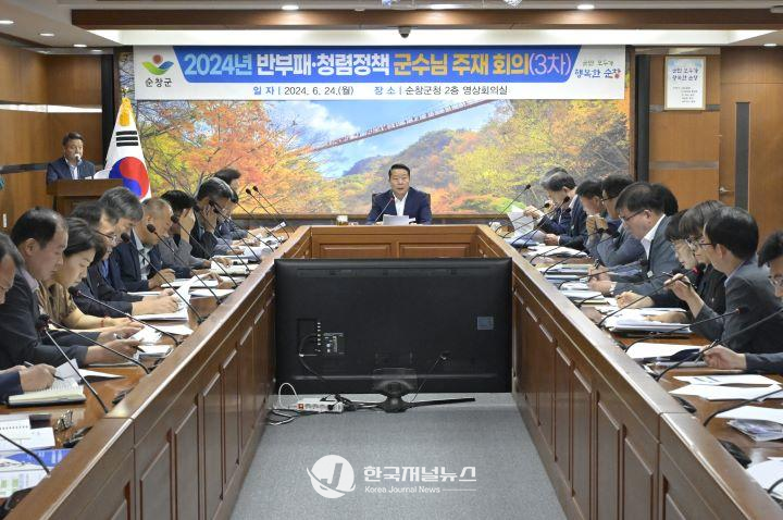 최영일 순창군수 주재하에 진행된 이날 회의에는 부군수, 국실과소장, 읍·면장 등 총 38명이 참석했으며, 회의는 감사법무팀장의 개회 인사로 시작되어 군수님의 인사말씀, 자체 제작한 청렴 홍보영상 청취, 청렴노력도 지표체계 현황표 공유, 부패 유발 요인 정비 협조, 내부체감도 부패경험 개선 방안 및 협조 사항 토의 순으로 진행됐다.
