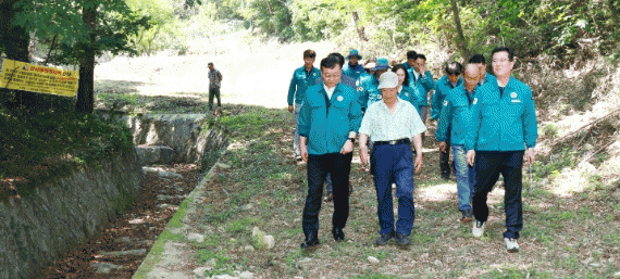 현장 점검지인 덕산마을은 산사태취약지역으로 마을을 둘러싼 계곡부의 침식이 진행돼 토석류 발생이 예상됨에 따라 지난 2023년에 사방댐 1개소를 설치하고 계곡부 정비를 실시한 곳이다.