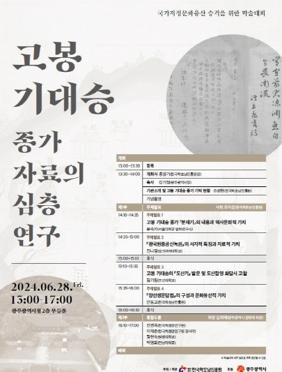 이번 학술대회는 고봉 기대승 종가에서 (재)한국학호남진흥원으로 기탁한 1100여점의 자료 소개를 시작으로 주제발표와 종합토론이 이어진다.