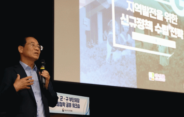 강진원 강진군수는 지난 26일 정부세종컨벤션센터 국제회의장에서 전국 시·군·구 부단체장을 대상으로 ‘지역발전을 위한 신규시책 수립 전략’이라는 제목으로 강진군이 지방소멸 극복을 위해 추진했던 정책을 소개하고 앞으로의 비전을 제시했다.