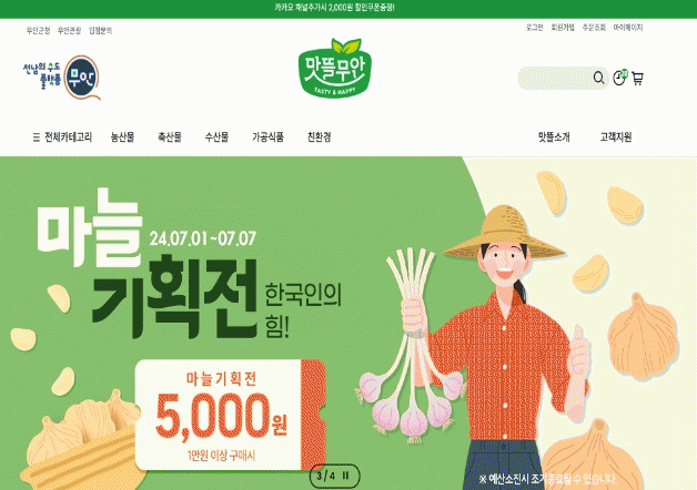이번 행사는 7월 1일부터 7일까지 진행되며 마늘상품 1만 원 이상 구매 시 5천 원 할인쿠폰을 지급한다.