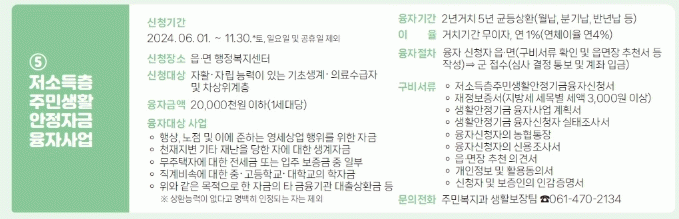 영암군이 자립 의지와 자활 능력이 있는 저소득 위기가구에 생활안정자금 융자를 지원하는 사업 참여자를 수시 모집하고 있다.