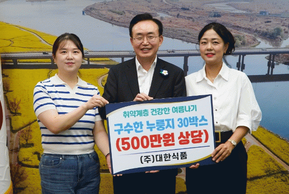 윤병태 시장은 “매번 소중한 나눔을 해주신 ㈜대한식품 대표님과 관계자분들께 진심으로 감사드린다”며 “기탁자의 따뜻한 마음을 담아 어려운 이웃들에게 잘 전달하겠다”고 전했다.