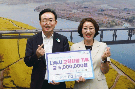 윤병태 시장은 “나주를 향한 애정 어린 관심으로 고향사랑기부제에 동참해 주신 윤 대표께 감사드린다”면서 “고향사랑기부제가 지역 소상공인과 함께 성장할 수 있는 발판이 될 수 있도록 적극 노력하겠다”고 화답했다.