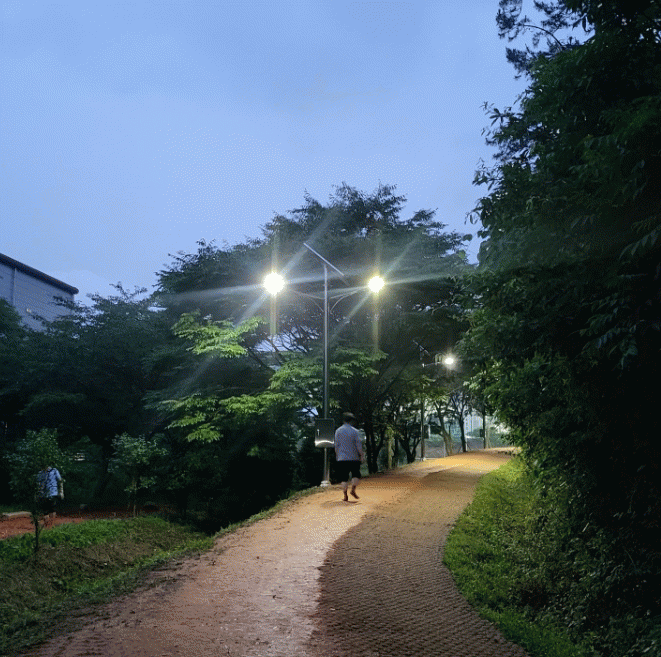 군은 맨발산책로 구간 전체에 가로등 11개소를 설치해 야간 운동에 편의를 더하고 있다.