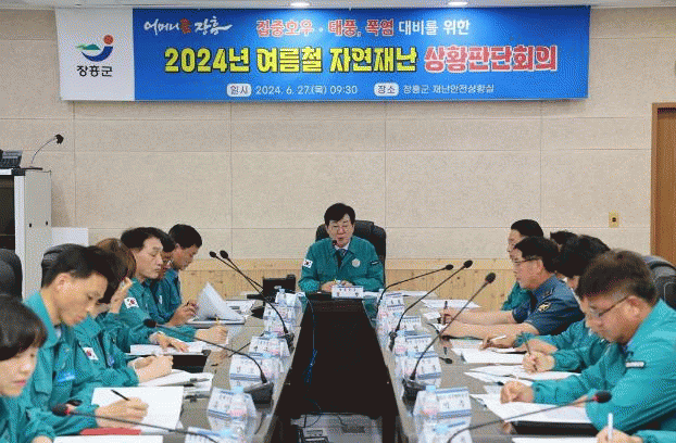 김성 장흥군수 주재로 열린 회의에는 14개 주요 부서장과 소방서, 경찰서, 수자원공사 관계자 등이 참석했다.