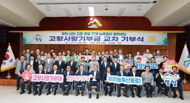 영암군이 6/27일 영암군민회관에서 영암·고흥·무안·신안군의 17개 농·축협 임직원 100여 명이 참석한 가운데 ‘고향사랑기부금 교차기부식’을 열었다.