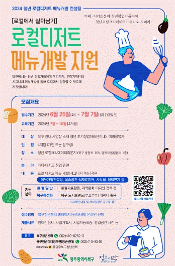 지원 규모는 북구 지역 카페․디저트 분야 청년 (예비) 창업가(5년 이내) 4개 팀 내외이고 북구 도시브랜드와 캐릭터를 활용한 메뉴 개발 아이디어가 있는 청년 창업가는 가산점을 부여받을 수 있다.