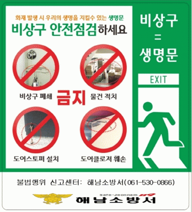 최진석 해남소방서장은 “비상구와 같은 소방시설은 화재·재난 시 매우 중요한 피난로가 될 수 있으며, 그 중요성은 아무리 강조해도 지나치지 않다”라면서 “시민의 경각심을 고취하고 안전의식을 강화하기 위해서라도 신고포상제를 적극적으로 활용하여 군민들의 안전을 지키는 데 동참해 주길 당부드린다”라고 말했다.