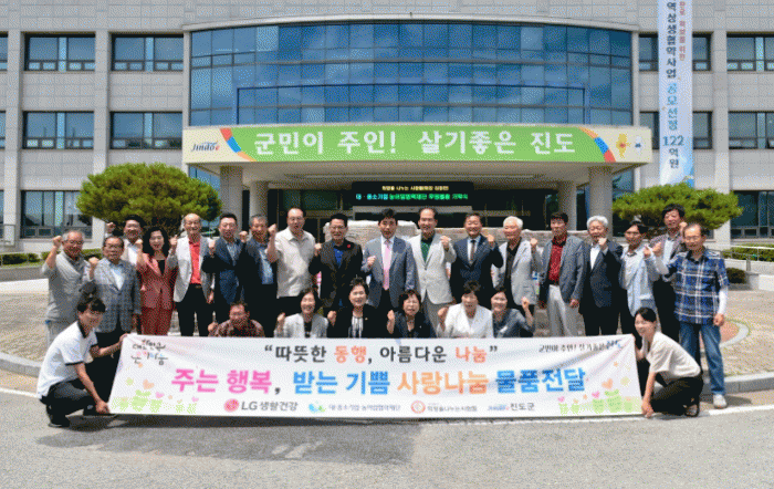 김희수 진도군수는 “진도군에 뜨거운 관심과 응원을 보내주신 LG생활건강, 대‧중소기업‧농어업협력재단, (사)희망을나누는사람들 관계자 분들에게 깊은 감사드린다”며 “소중한 후원품과 따뜻한 마음은 생활에 어려움을 겪는 농어업인 가정에 잘 전달하고 지역사회의 구성원으로 힘차게 살아갈 수 있도록 군에서도 다양한 지원을 아끼지 않겠다”고 말했다.