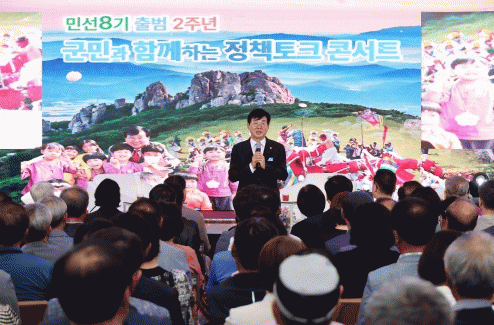 이날 토크 콘서트는 군·읍면 기관사회단체장, 마을이장, 청년 대표, 언론인 등 500여 명이 참석한 가운데 물축제 홍보영상 상영, 장흥군의 경치를 담은 애국가 영상 상영, 군민과 함께한 2년 동안의 성과 공유, 군 주요 정책 방향 대담을 통한 비전 제시, 김성 군수와 군민과의 현장 즉문즉답 등으로 진행됐다.