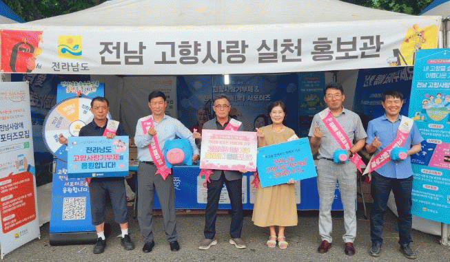 대구경북호남향우회 회원들은 ‘2024 대구치맥페스티벌’에서 고향사랑 캠페인을 추진 중인 전남도 홍보부스를 지난 3일 방문해 무더운 날씨에 고생하는 전남도 직원들을 격려하고, 기부금을 기탁했다.