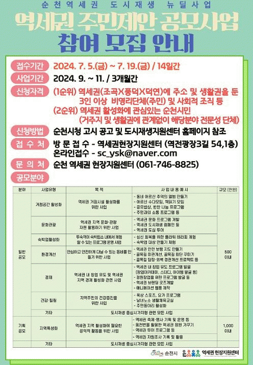 신청 방법은 시 누리집 고시․공고에 게시된 사업계획서 등 구비서류를 갖춰 역세권현장지원센터를 방문하여 신청하거나, 전자우편을 통해 신청할 수 있다.