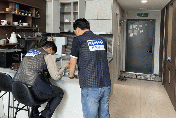 특히 숙박 중계플랫폼을 통해 전남 100여 개소를 모니터링하고, 이용자 댓글 등을 분석해 불법이 의심스러운 아파트 2개소, 오피스텔 3개소, 주택 1개소를 특정해 전남도 식품의약과와 합동으로 진행했다.