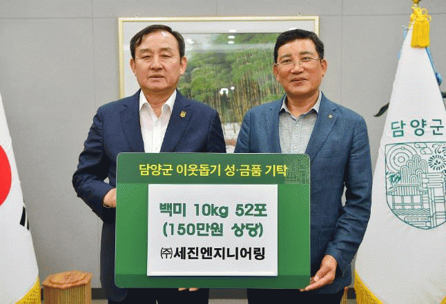 전남 영암군에 본사를 둔 ㈜세진엔지니어링은 전기설계, 신재생 에너지사업 등을 전문으로 하는 기업체로, 담양군 뿐만 아니라 다른 지역에도 장학금 및 고향사랑기부금 전달 등을 통해 꾸준한 사회공헌 활동을 하고 있다.