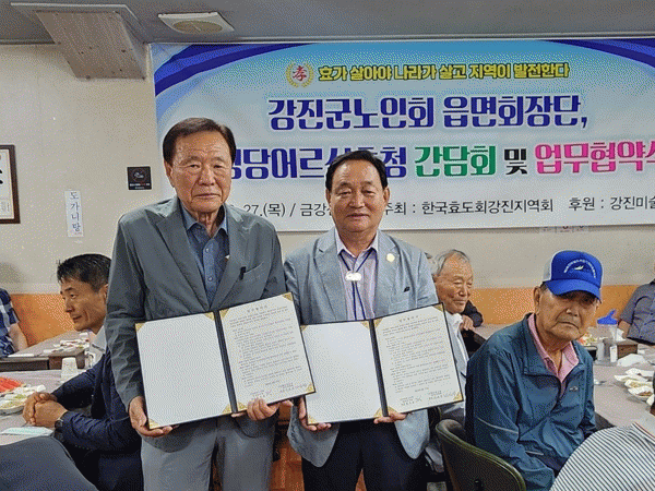 이번 행사는 단순식사 제공에서 그치지 않고, 강진효도회와 강진군 노인회가 효 실천 확산과 효 문화 계승 발전을 위해 함께 노력하기로 하는 업무 협약식을 가져 의미를 더했다.