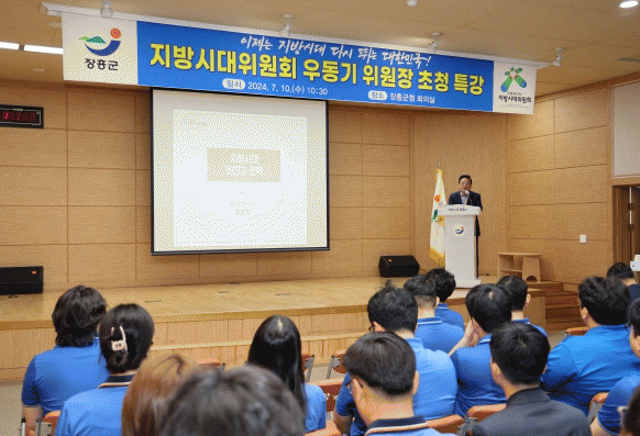 장흥군 공직자 150여 명이 참석한 가운데 우 위원장은 지방의 현실과 역대 정부의 균형발전정책, 지방시대 중점 추진과제 등을 제시했다.