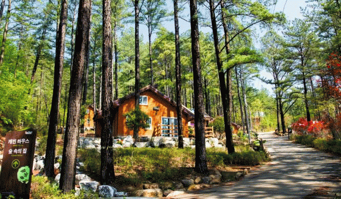 또한 빽빽한 나무 사이에 숙박시설이 조성돼 숲캉스를 즐기기에 제격이다.