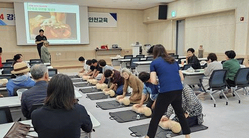 실습 편의를 위해 반을 나눠 진행된 이번 교육은 (사)한국아동청소년안전교육협회 전남지회 강명선 회장을 강사로 초청해, 심폐소생술, 자동심장충격기(AED) 사용법, 화재재난 대응, 생활안전 등에 관한 이론과 실습 교육을 두루 진행했다.