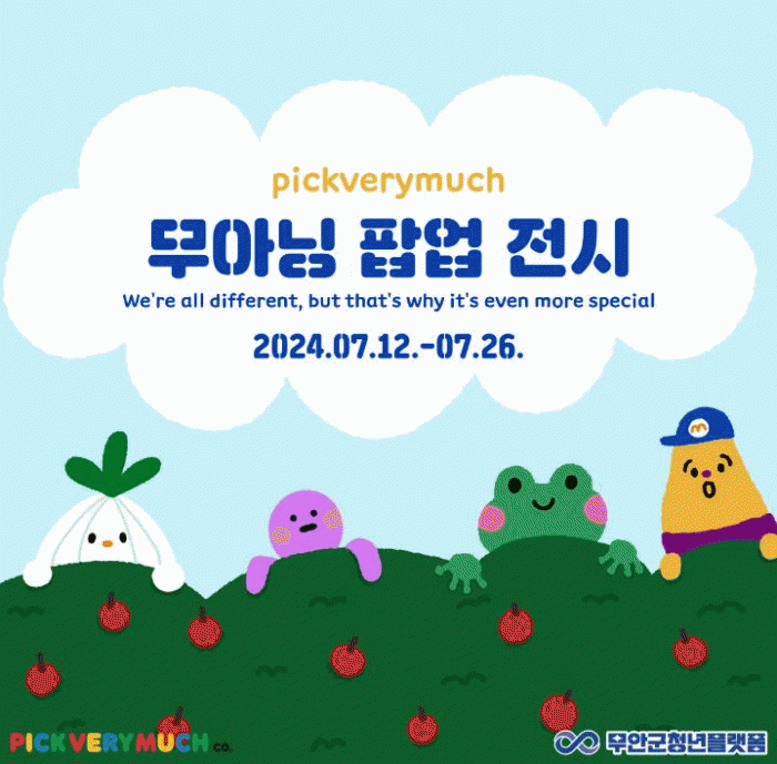 이번 전시회의 주제는 ‘We’re all different, but that’s why it’s even more special’로 무안에서 지역 작가로 활동하며 굿즈샵을 운영하고 있는 피크베리머치와 함께 진행된다.
