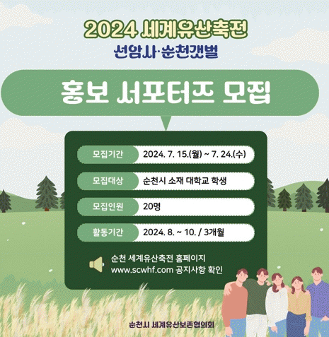 지원 희망자는 순천 세계유산축전 누리집에서 공고문을 확인 후 신청서를 이메일로 제출하면 된다.