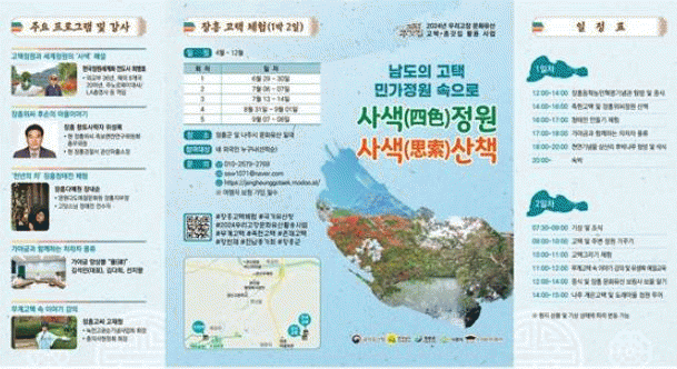 장흥 고택 체험은 ‘사색(四色)정원 사색(思索)산책’을 주제로 7월 13일부터14일, 8월 31일부터9월 1일, 9월 7일부터 8일 세 차례 더 진행된다.