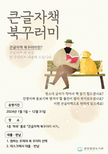 (고령자 및 저시력자) 큰 글자책 또한 꾸러미로 만나볼 수 있다. 철학, 건강, 과학 등 주제별로 큰 글자책 3권을 담아 만든 ‘큰 글자책 북꾸러미(20개)’는 분기별로 선정주제를 변경해 이용자들의 선택의 폭을 넓히고 있다.