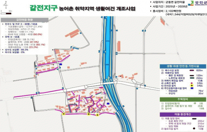 한편, 강진군은 2017년도부터 올해까지 취약지역 생활여건 개조사업에 총 12개 마을이 선정되어 꾸준히 마을 개선 사업을 펼치고 있다.