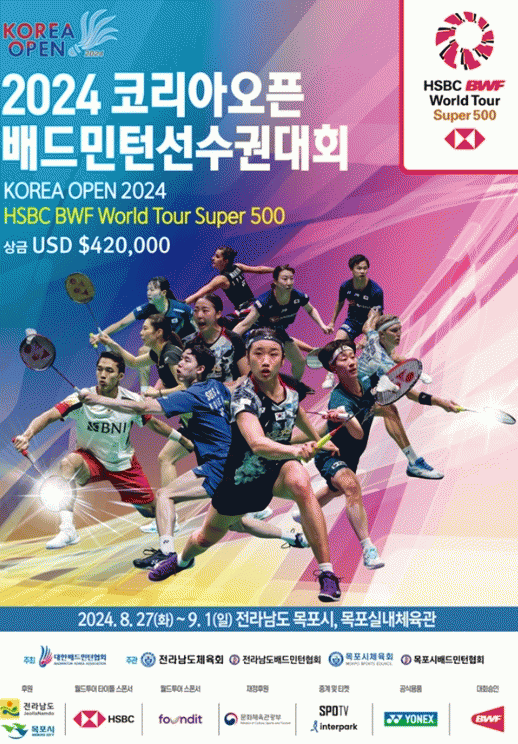 이번 대회는 세계배드민턴연맹에서 공식 인증한 국제대회로, 25개국의 300여명의 세계 최정상급 선수들이 8월 27일부터 9월 1일까지 6일간 목포실내체육관에서 열띤 경기를 펼친다.