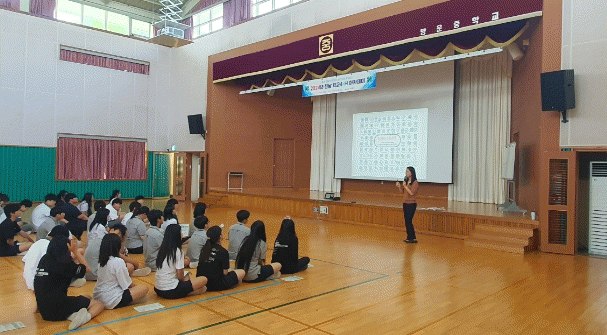 전교생 44명 모두가 참석한 교육에서‘한국4-H전라남도본부’지승민 사무차장이 강사로 나서 학생들에게 4-H의 상징과 역사, 슬로건 등의 기본적인 내용과 4-H 서약과 노래를 가르쳤다.