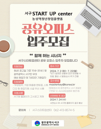 정명숙 일자리청년지원과장은 “서구스타트업센터 공유사무실 무상임차를 통해 청년 창업가들의 경제적 비용 부담을 덜어주고 착한도시 서구에서 지속적으로 성장할 수 있도록 지원을 아끼지않겠다”고 말했다.