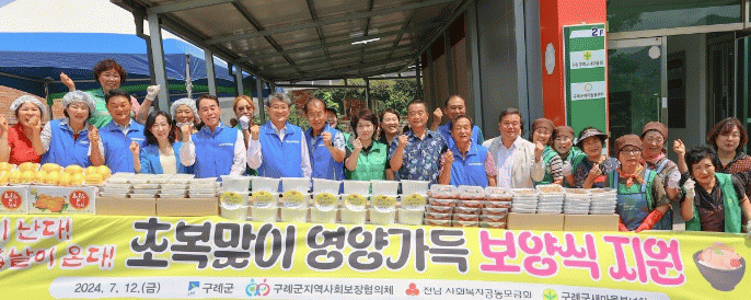 임재신 구례군지역사회보장협의체 민간위원장은 “회원들이 정성이 담긴 보양식이 여름철 무더위로 지친 어르신들에게 큰 힘이 되기를 바란다”며 “앞으로도 복지 사각지대 발굴과 어려운 이웃 지원 등에 최선을 다하겠다”고 말했다.