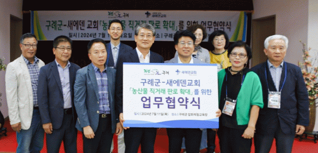 김순호 군수와 소강석 새에덴교회 담임목사는 협약서에 서명하며, 구례군 농산물의 판매 촉진과 더불어 구례군의 문화·관광·농촌 체험프로그램·축제 활성화를 위해서도 적극적으로 협력해 나가기로 했다.