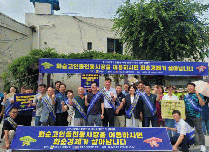 이날 행사에는 한여름 더위에도 불구하고 강종철 화순 부군수, 하성동 화순군의원, 강재홍 화순군의원, 김경수 화순군소상공인연합회장 등 50여 명이 참석하여, “화순고인돌전통시장을 이용하시면 화순경제가 살아납니다”의 슬로건이 적힌 어깨띠와 홍보 팻말을 들고, 시장 거리를 행진하는 등 지역경제 활성화에 대한 목소리를 높였다.
