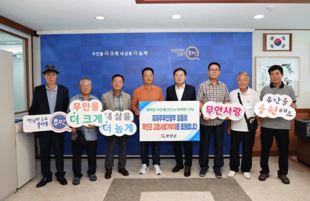 이날 부군수실에서 열린 고향사랑기부금 기탁식에는 재제주호남향우회 차성남 무안향우회장이 고향사랑기부금 100만원을 기탁하고 연이어 고향을 함께 방문한 재제주무안향우 일동이 무안군의 지속적인 발전을 응원했다.