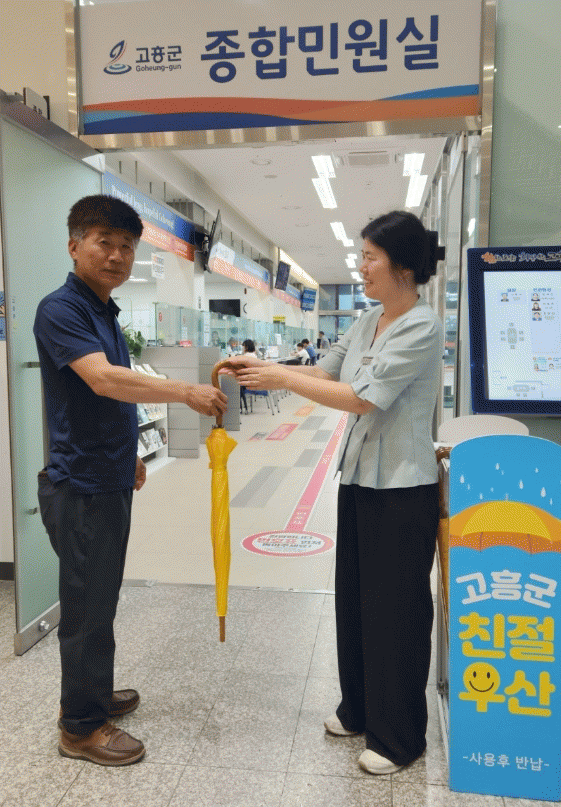 군 관계자는 “비가 올 때 우산이 없으면 당황하기 마련인데, 친절우산 대여로 민원인에게 작지만, 소소한 감동이 전해졌으면 한다”며 “앞으로도 군민에게 한 발 더 다가서는 친절 서비스 제공과 민원 만족도를 높일 수 있도록 노력하겠다”고 전했다.