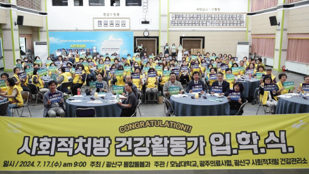 박병규 광산구청장은 “오늘 입학식으로 광산구는 시민 누구나 살던 곳에서 건강하고 주체적인 노후를 보내는 100세 시대를 향해 한 발 더 내딛게 됐다”며 “교육에 참여한 사회적처방 건강활동가들이 외롭지 않고, 아프지 않은 100세 시대 완주를 돕는 ‘페이스메이커’가 되도록 적극 뒷받침하겠다”고 밝혔다.