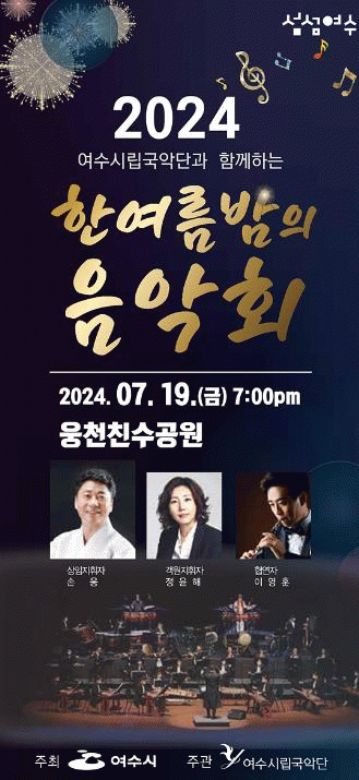 여수시립국악단이 주관하는 이번 공연은 여수밤바다를 배경으로 하며 손웅 상임지휘자에 맞춰 국악단원 44명과 정윤혜 객원지휘자 등 총 50여 명이 무대에 오른다.
