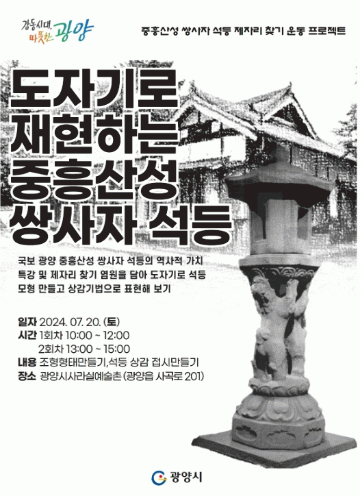 ‘도자기로 재현하는 쌍사자 석등’ 체험 프로그램은 국보 광양 중흥산성 쌍사자 석등 제자리 찾기'사업의 일환으로 기획됐다.
